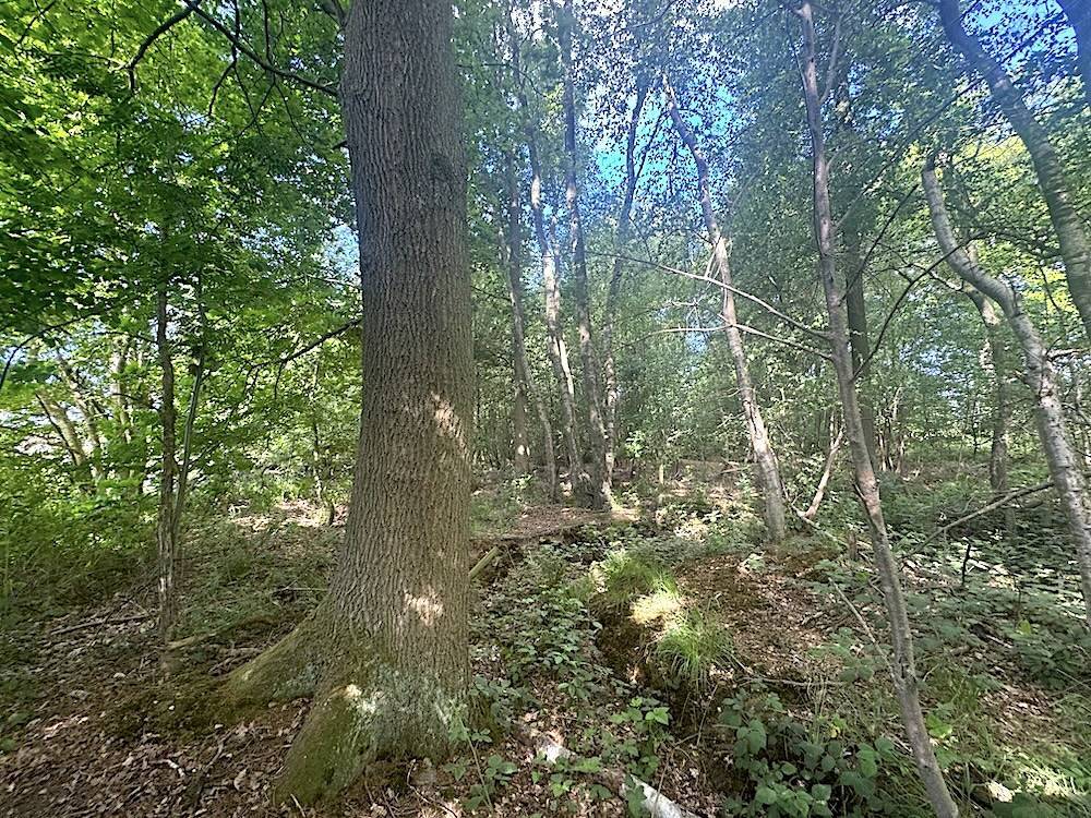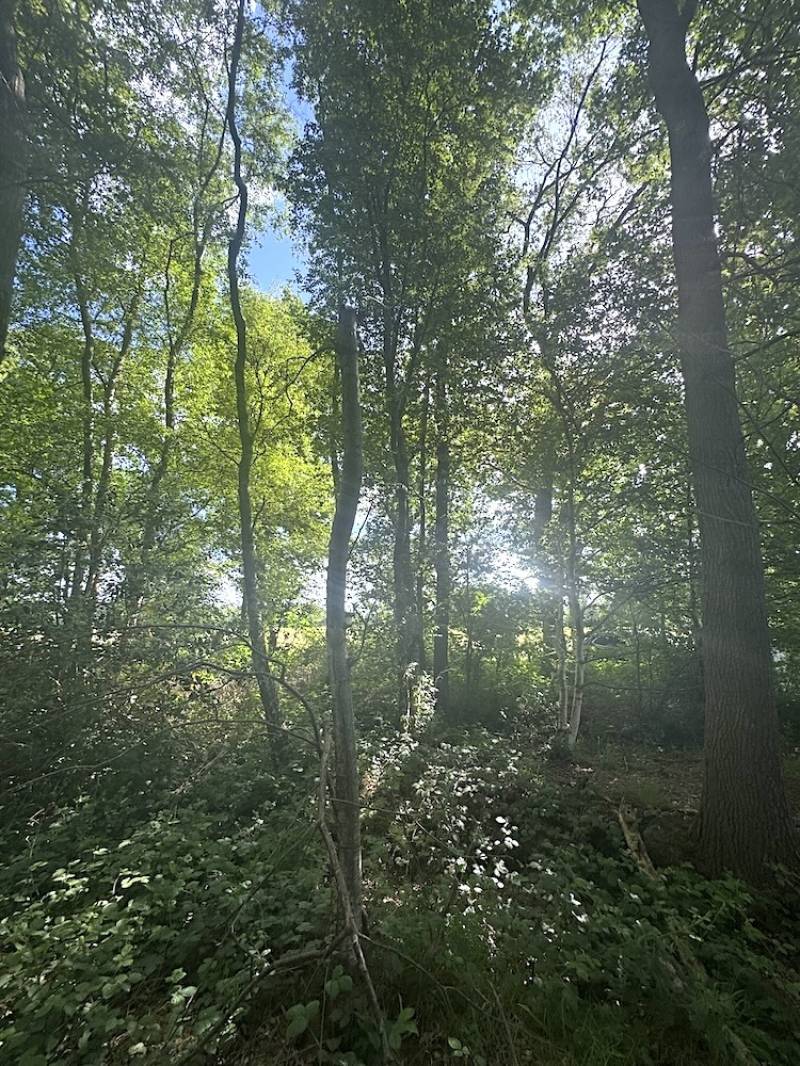 Een echt juweel van loofbomen wacht op je: dikke eiken als statige poortwachters, een indrukwekkende dassenburcht, en een gevarieerd bos van eiken, berken en elzen. Struiken zoals lijsterbes en hazelaar en een ondergroei van bramen en varens maken het plaatje compleet. Aan de noordzijde wordt het bos begrensd door een rustige sloot.
