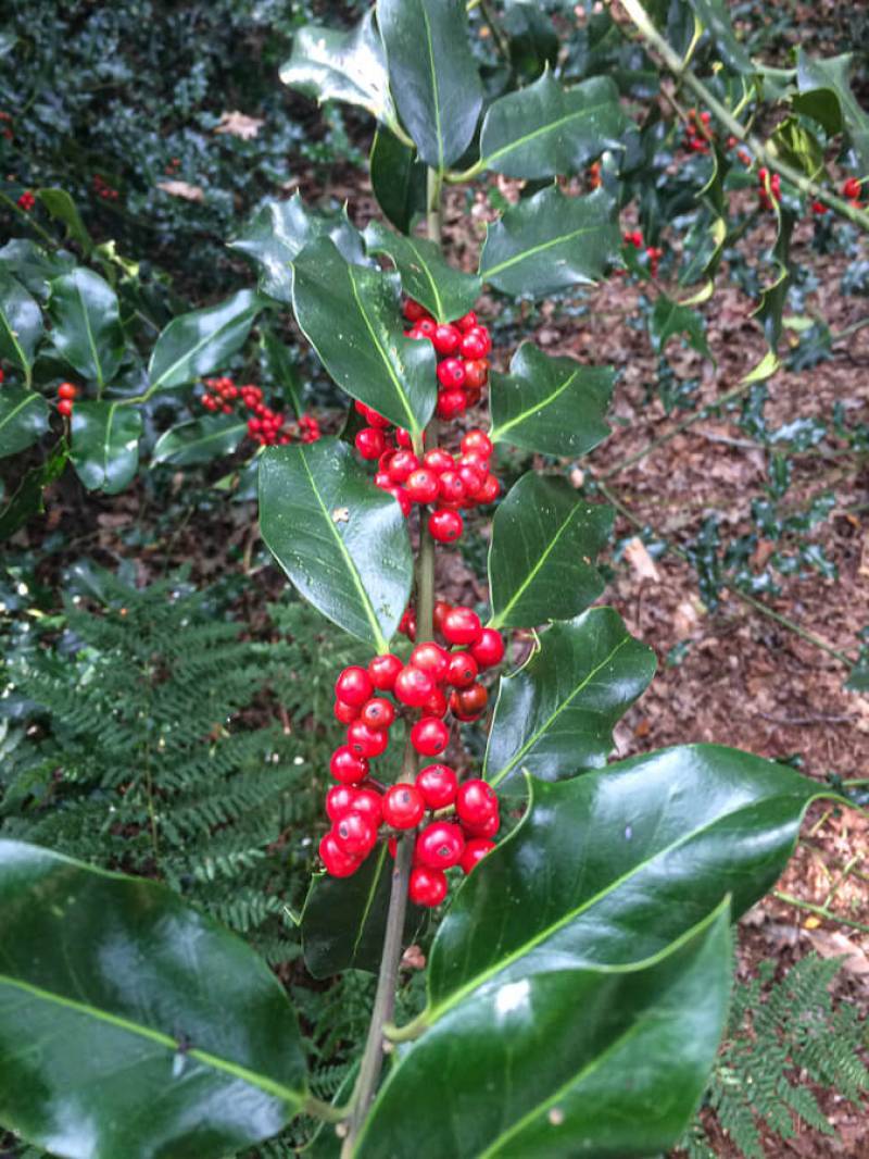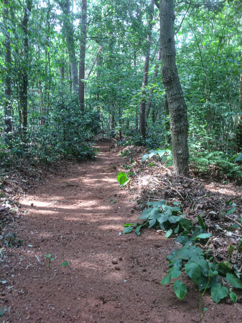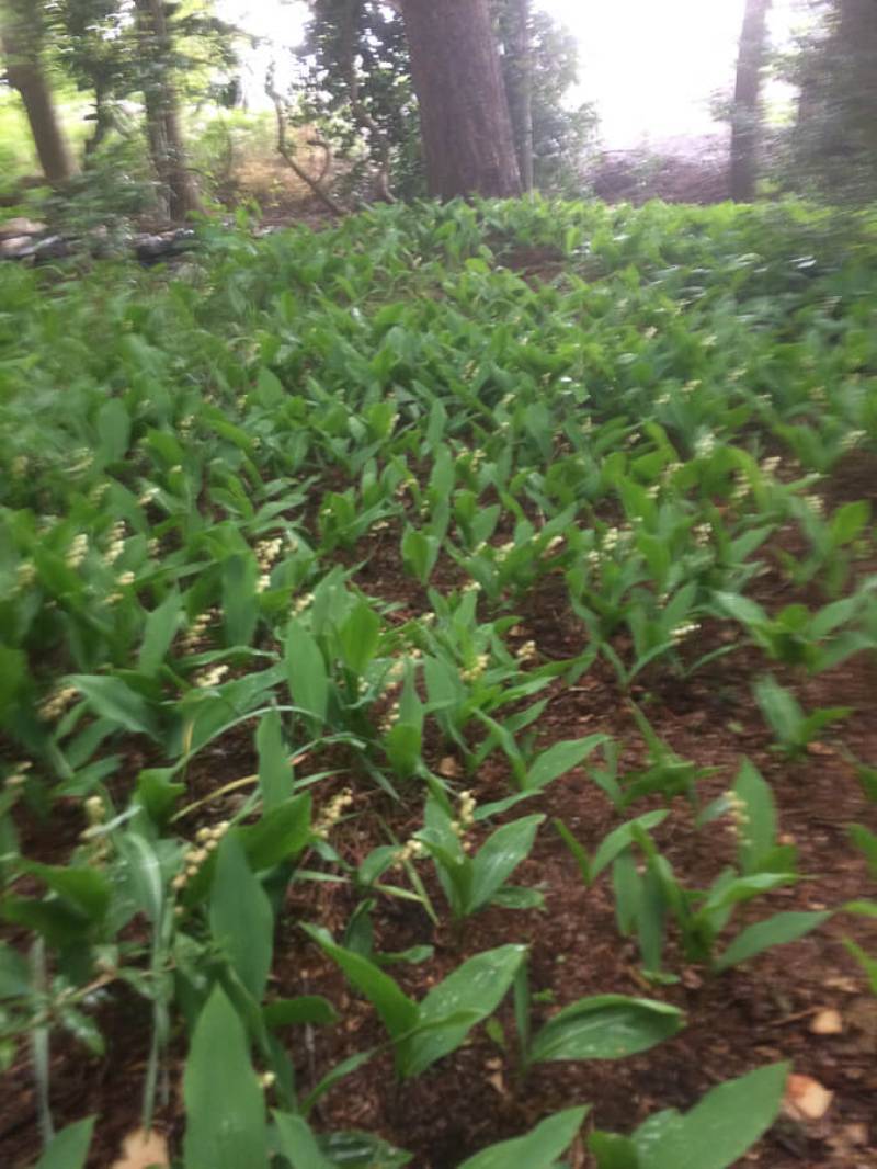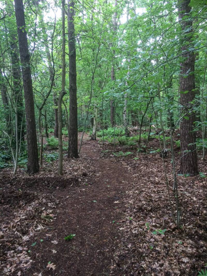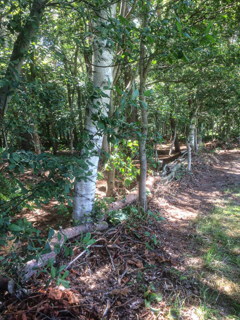 Een parkachtig vogelrijk perceel als dit kom je niet vaak tegen. Het bos is rijk begroeid met een zeer gevarieerde opstand: den, lariks, eik en berk. De ondergroei bestaat uit varens, rododendron, taxus, hulst, laurier en bramenstruiken. De goed getemde duizendknoop maakt het plaatje compleet.